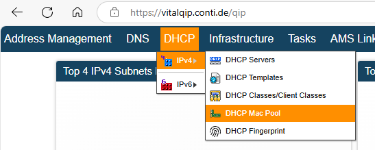 - Select DHCP Mac Pool from the final menu